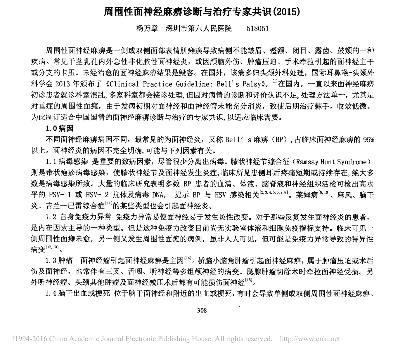 【蘇肽生】2015 周圍性面神經麻痹診斷與治療專家共識